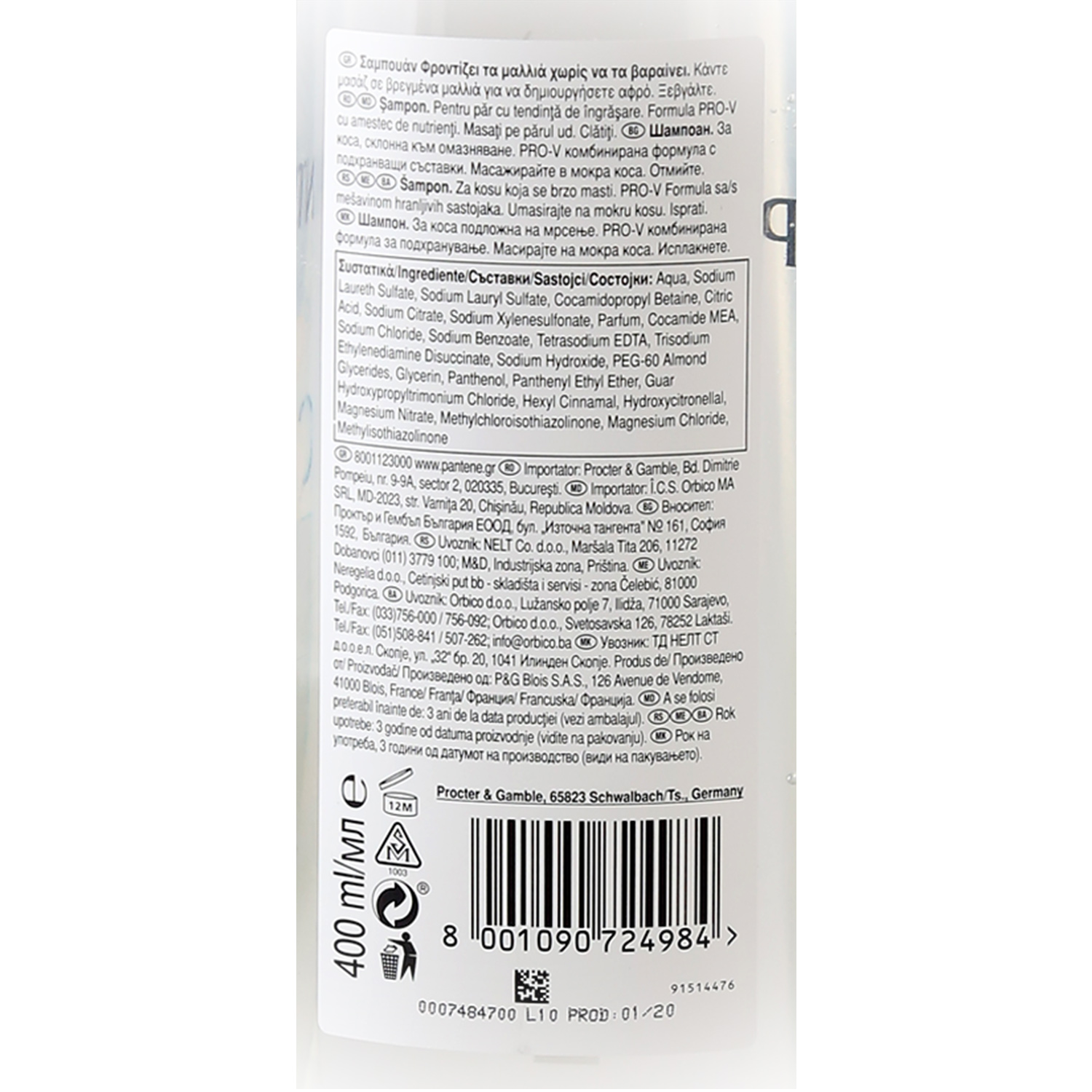Sastojci Aqua, Sodium Laureth Sulfate, Sodium Lauryl Sulfate, Cocamidopropyl Betaine, Citric Acid, Sodium Citrate, Sodium Xylenesulfonate, Parfum, Cocamide MEA, Sodium Chloride, Sodium Benzoate, Terqasodium EDTA, Trisodium Ethylenediamine Disuccinate, Sodium Hydroxide, PEG-60 Almond Glycerides, Glycerin, Panthenol, Panthenyl Ethyl Ether, Guar, Hydroxypropyltrimonium Chloride, Hexyl Cinnamal, Hydroxycitronellal, Magnesium Nitrate, Methylchloroisothiazolinone, Magnesium Chloride, Methylisothiazolinone.