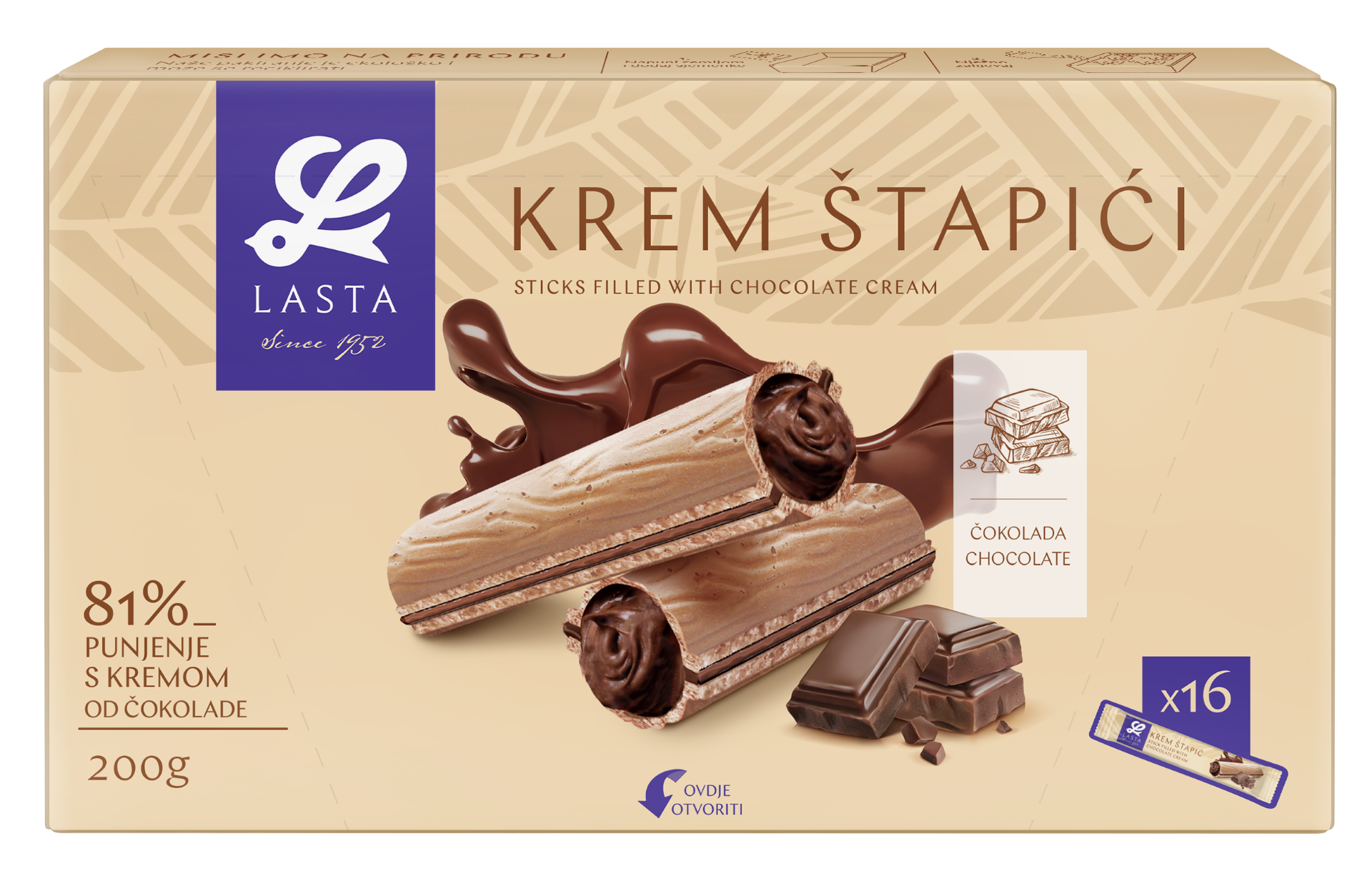 Krem štapići čokolada 200g Box Lasta