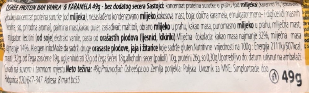 Protein bar vanila & karamela 49g bez dodatog secera Oshee