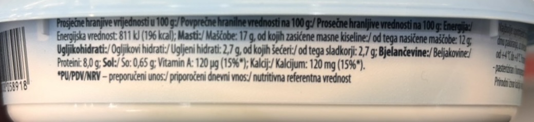 Dnevni unos u % na preporučenu dnevnu dozu od 2000kcal