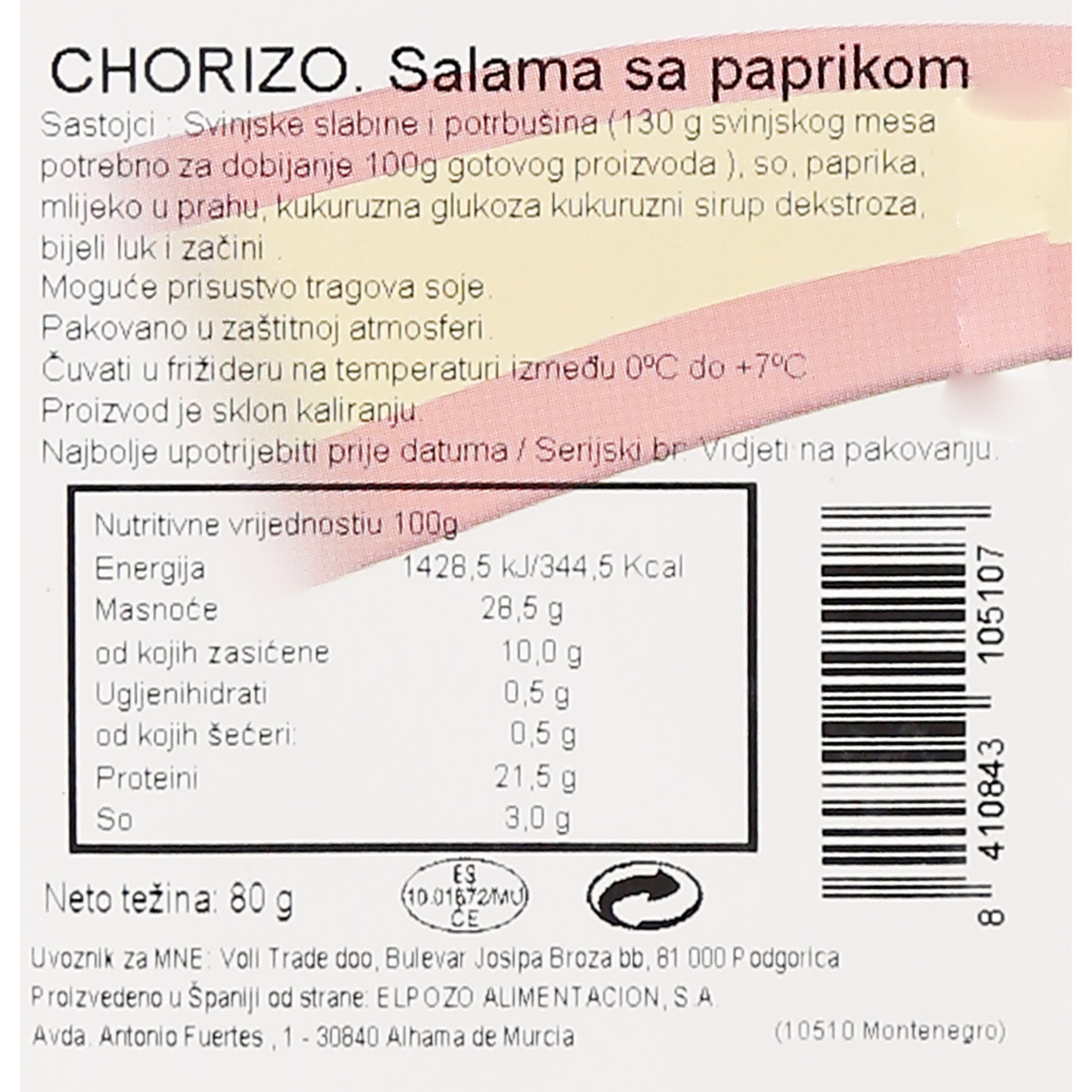Salama chorizo slajs 80 g El Pozo