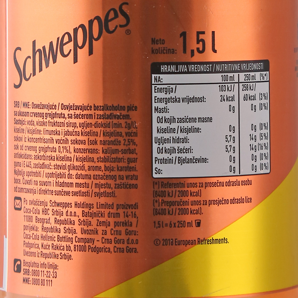 Osvježavajuće, bezalkoholno piće sa ukusom crvenog grejpfruta, sa šećerom i zaslađivačem