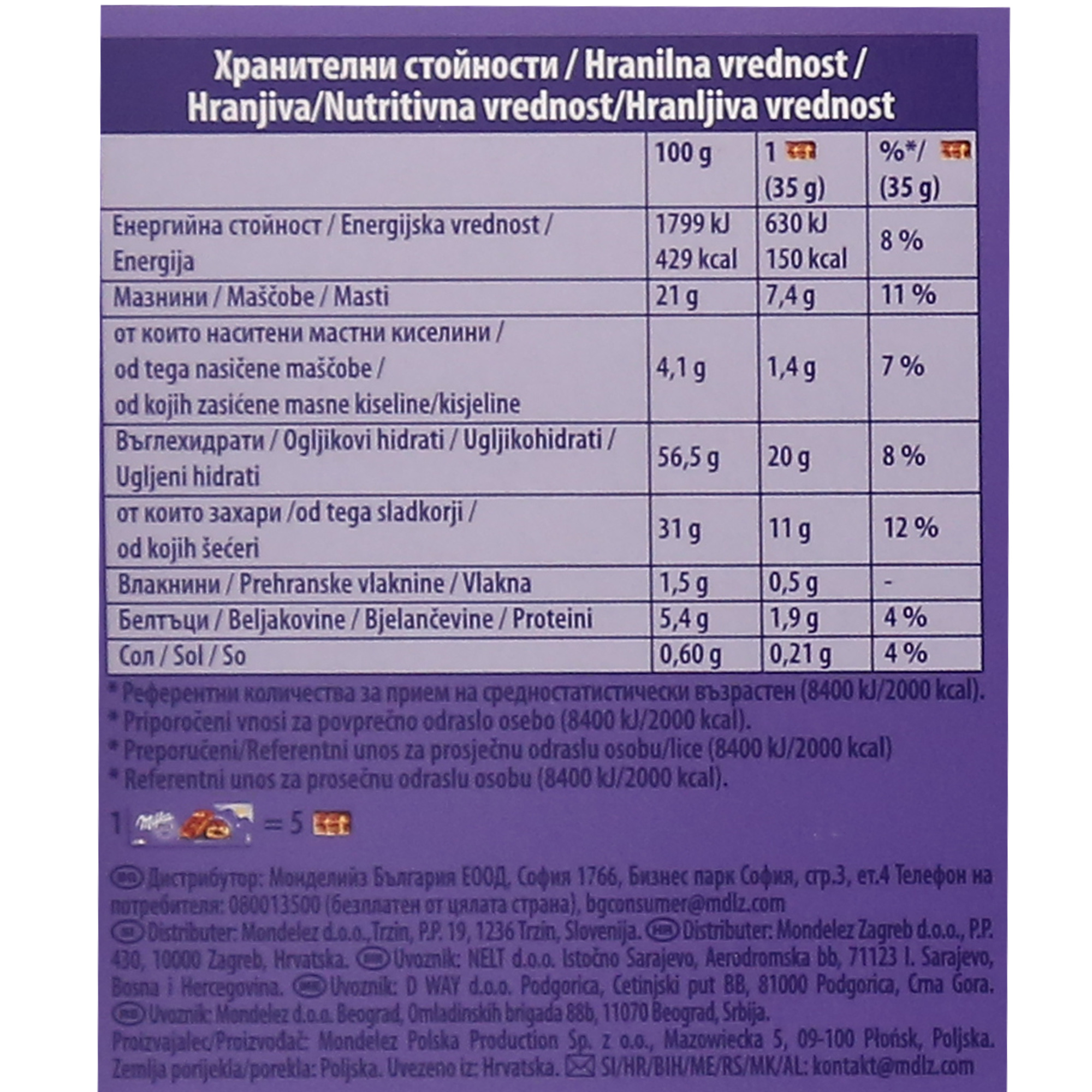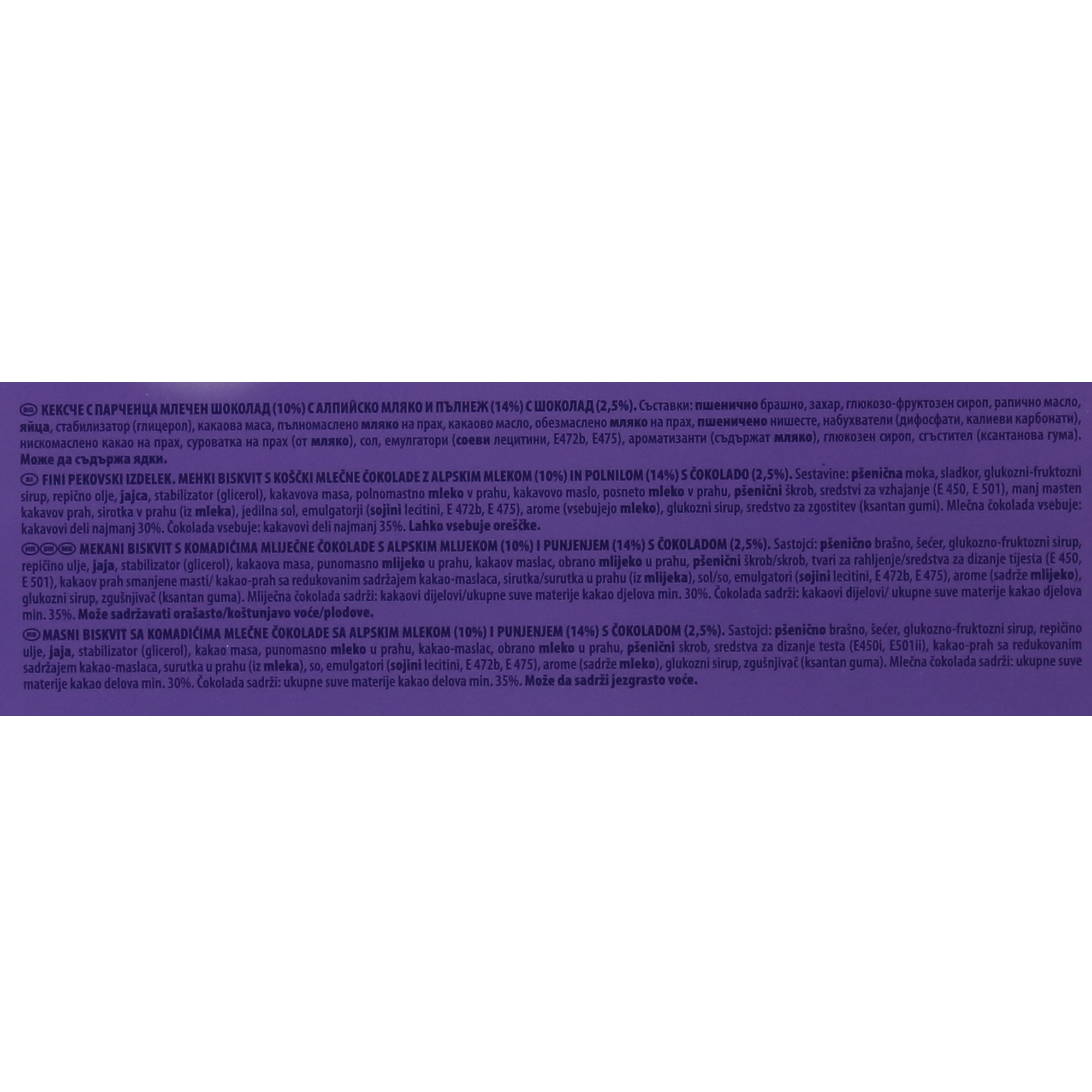 Biskvit sa komadićima mliječne čokolade sa alpskim mlijekom i čokoladnim punjenjem (14%)