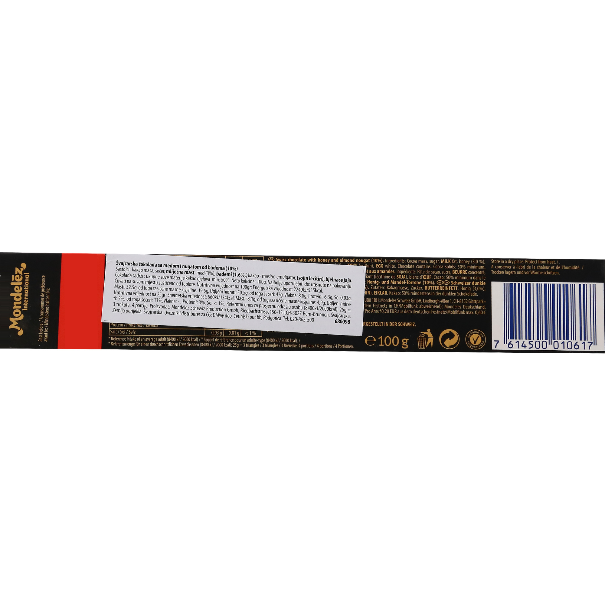 Švajcarska tamna čokolada sa medom i bademima
