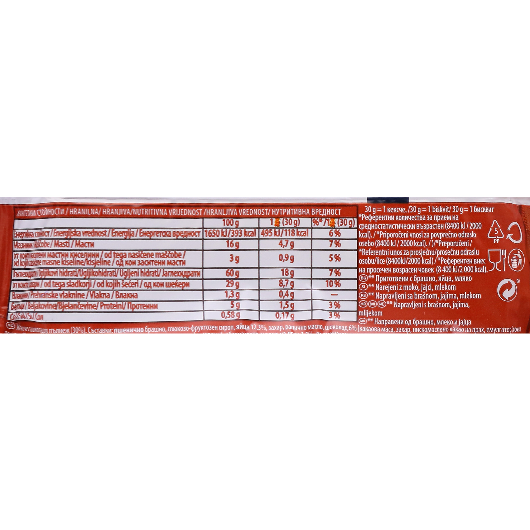 Dnevni unos u % na preporučenu dnevnu dozu od 2000kcal