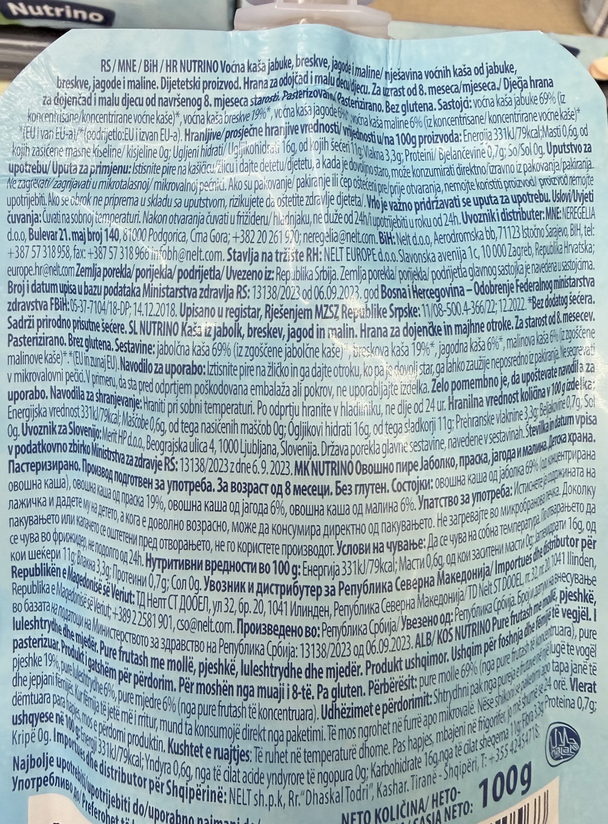 Vocni pire jabuka-breskva-jagoda-malina 100g Nutrino