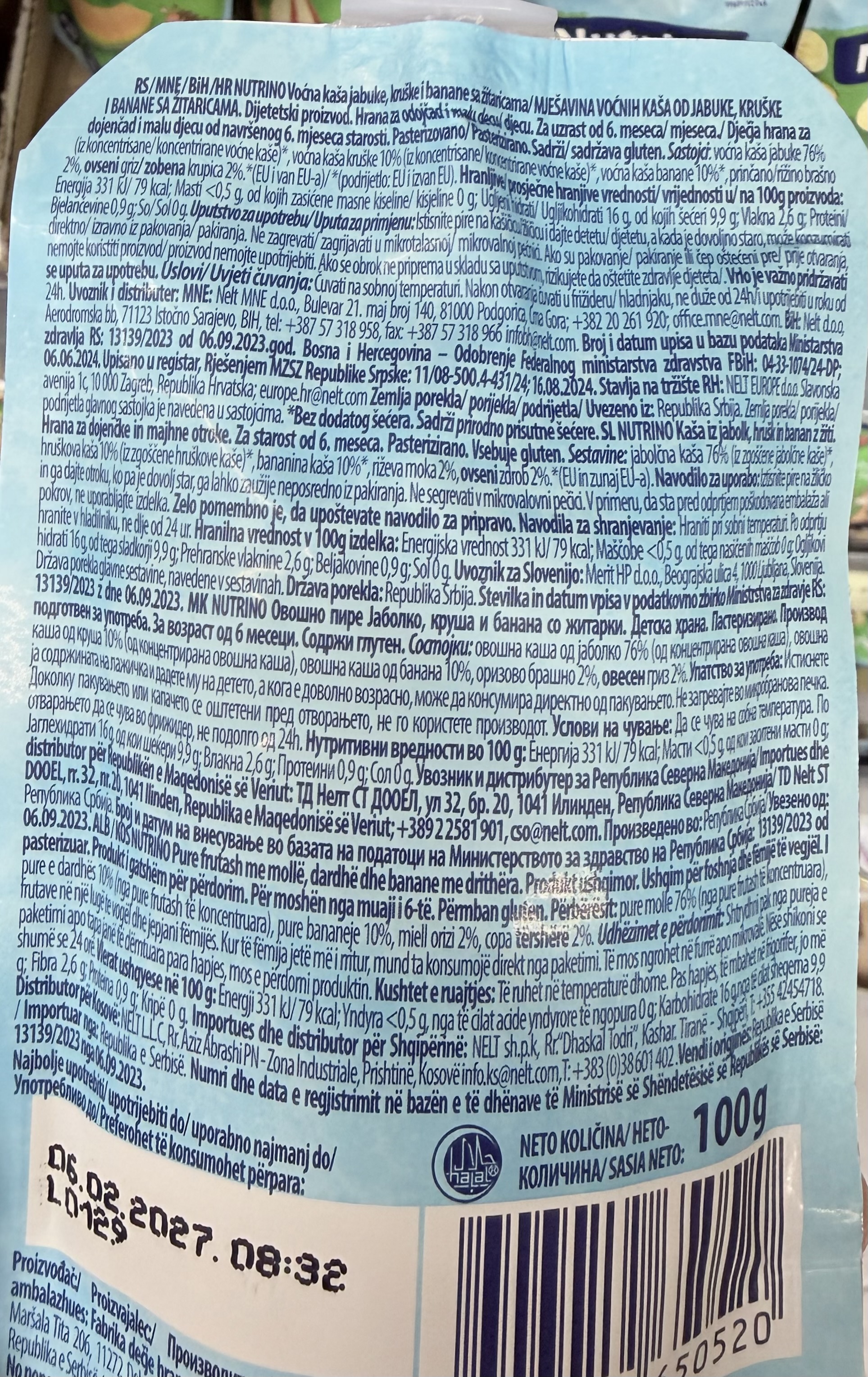 Vocni pire jabuka-kruška-banana-žitarice 100g Nutrino
