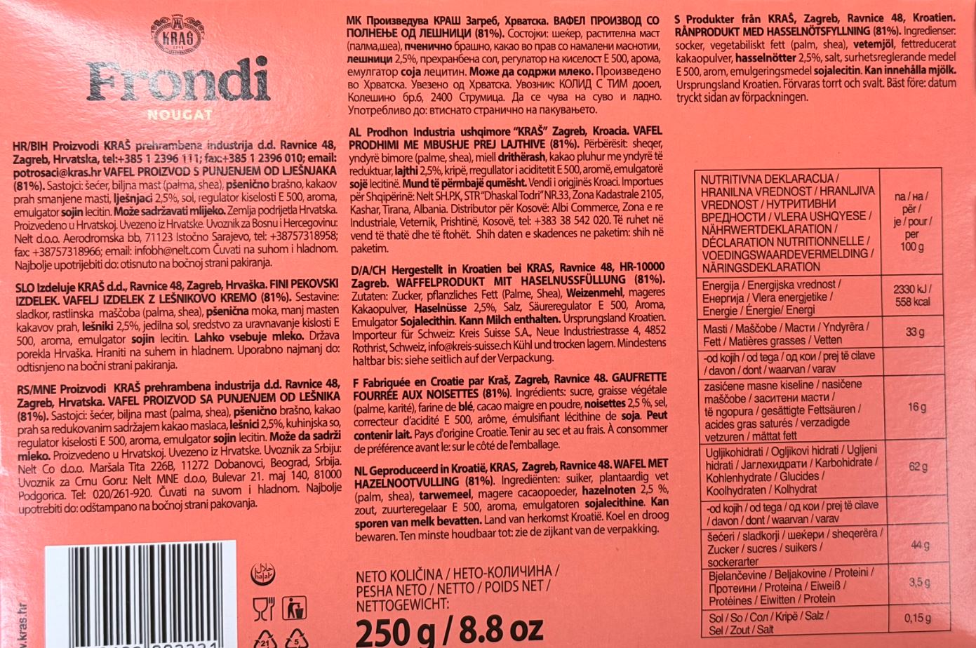 Frondi vafel nougat 250g Kraš