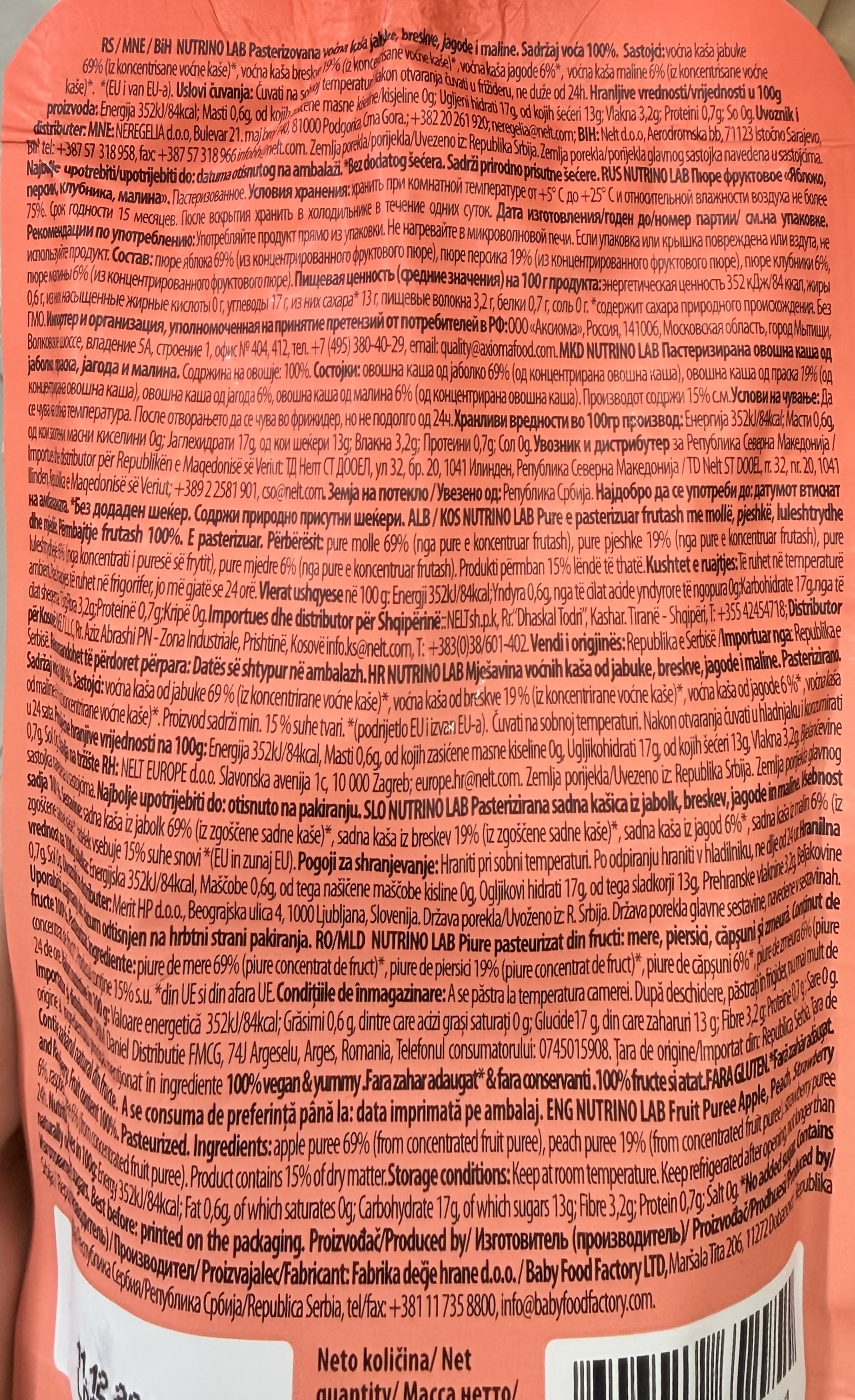 Nutrino Lab pire jabuka, breskva, jagoda 200g