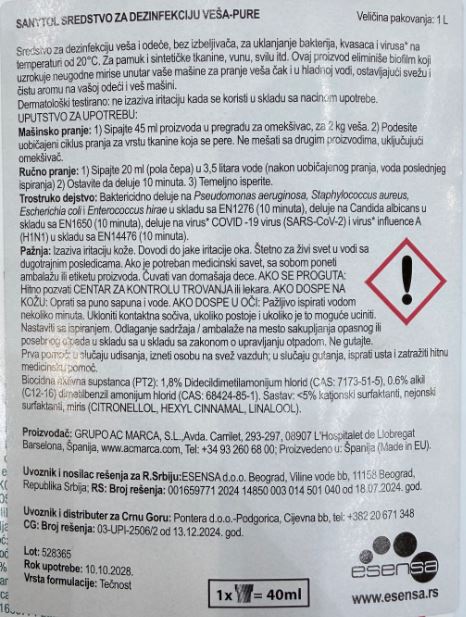 Sanytol sredstvo za dezinfekciju veša 1l