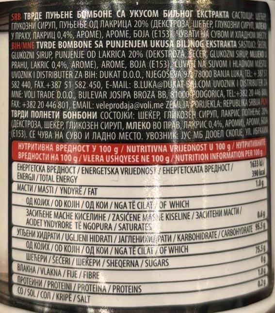 Sve cijene na ovoj platformi izražene su u EUR sa uračunatim PDV-om. Moguće je da informacije o bilo kom proizvodu nijesu potpune. Nutritivna vrijednost, navedeni sastojci i njihova količina sastojaka, kao i alergeni mogu se promijeniti. Molimo vas da prije konzumacije pažljivo pročitate etiketu tj. deklaraciju, da se ne oslanjate isključivo na informacije koje su objavljene na web stranici. Ukoliko imate bilo kakvih pitanja, želite savjet ili imate problem sa dostupnošću artikala, molimo vas da nam se obratite na e-mail adresu [email protected] ili putem broja Call centra 19995. Voli Trade doo Podgorica maksimalno koristi sve svoje resurse da svi artikli na ovom sajtu budu prikazani sa ispravnim nazivima, specifikacijama, fotografijama i cijenama. Ipak, ne možemo garantovati da su svi podaci na ovom sajtu u potpunosti ispravni. Zadržavamo pravo promjene cijene svih proizvoda i usluga, bez prethodne najave i objave na ovom sajtu. Svi artikli prikazani na ovom sajtu su dio su našeg redovnog asortimana, ali to i ne podrazumijeva se da su svi dostupni u svakom trenutku na našem lageru.