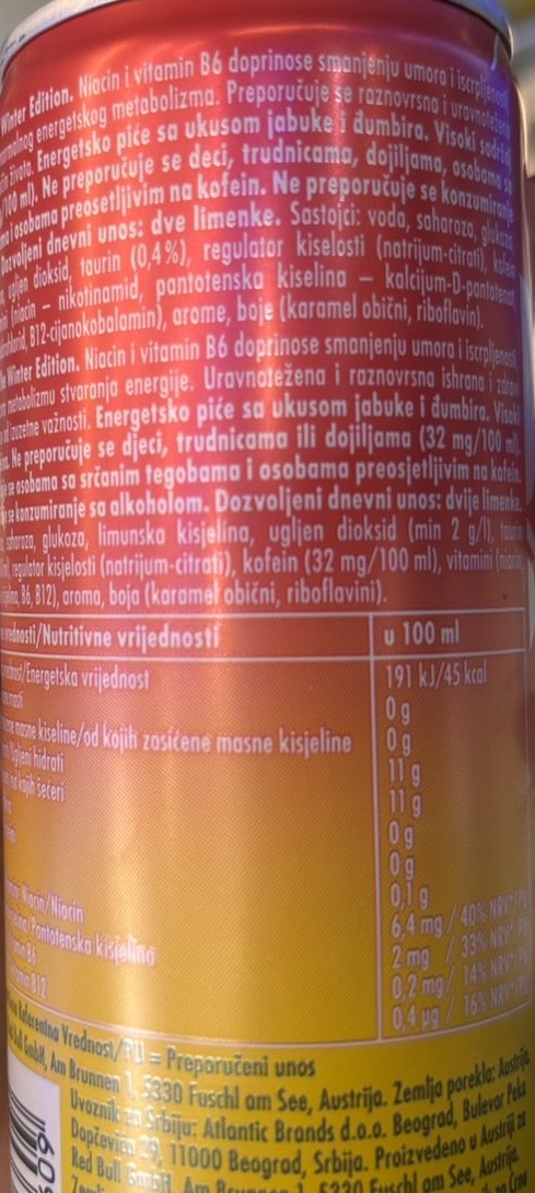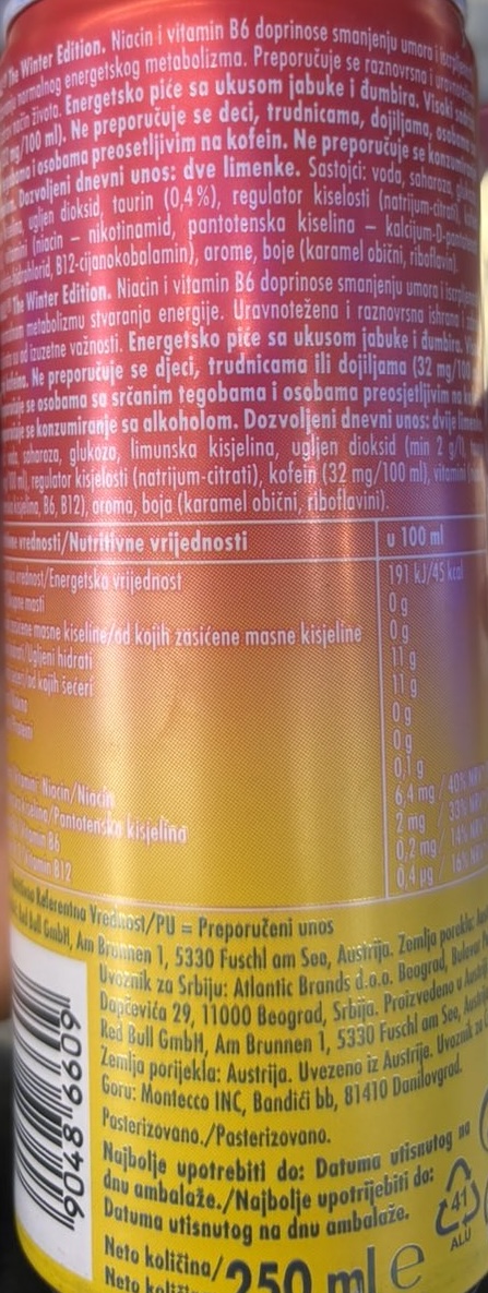 Red Bull Winter Edition djumbir jabuka 0.25l